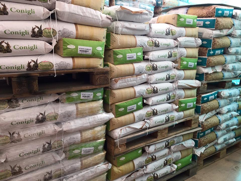 Mangimi per polli, galline, galline ovaiole, selvaggina, suini, bovini e conigli.